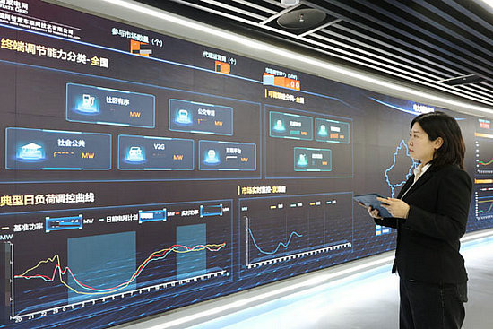 工作人員通過(guò)國(guó)家電網(wǎng)智慧車聯(lián)網(wǎng)平臺(tái)監(jiān)測(cè)負(fù)荷聚合調(diào)控情況。受訪者供圖
