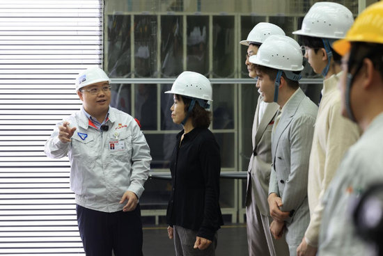 一行人走進(jìn)工廠,最大的感受是“明亮整潔”。這是車間打造安心安全、舒適的生產(chǎn)環(huán)境的體現(xiàn)。溫義飛還注意到一個(gè)細(xì)節(jié),工廠所有暴露在外的鐵制品、金屬制品基本都把尖銳部分包裹住了,避免工人觸碰到。據(jù)介紹,這是工廠“安全第一”理念的生動(dòng)寫(xiě)照。
