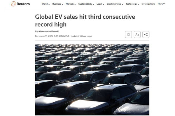 英國(guó)媒體13日援引一家市場(chǎng)研究公司的最新數(shù)據(jù)報(bào)道,11月,全球電動(dòng)汽車銷量實(shí)現(xiàn)了連續(xù)第七個(gè)月的增長(zhǎng),同比增幅高達(dá)32%,創(chuàng)歷史新高。與此同時(shí),中國(guó)繼續(xù)領(lǐng)跑全球電動(dòng)汽車銷售市場(chǎng)。