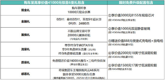 風(fēng)云A8L共推出5款車型,1.5L-DHT 70KM標準型10.99萬元、1.5L-DHT 70KM舒適型11.99萬元、1.5TGDI-DHT 145KM標準型12.99萬元、1.5TGDI-DHT145KM舒適型13.99萬元、1.5TGDI-DHT 145KM豪華型14.99萬元,并帶來購車至高享價值41000元的驚喜6重禮遇,奇瑞置換補貼價低至9.49萬元起(不含國補)。