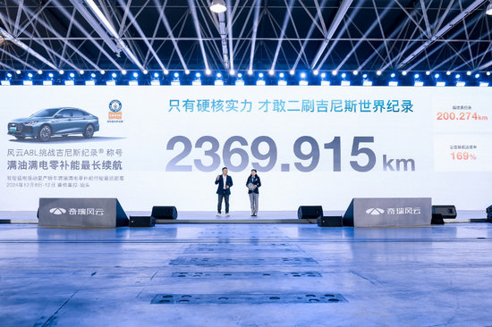 此次發(fā)布會上,風(fēng)云A8L項目組,創(chuàng)造了“駕駛插電混動量產(chǎn)轎車滿油滿電零補能行駛最遠距離”的吉尼斯世界紀錄稱號,達成了2369.915公里的成績。
