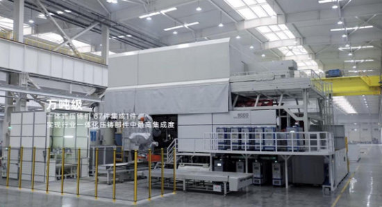 與此同時,賽力斯超級工廠率先應用了萬噸級一體化壓鑄機,這是全球首臺、全球最大的兩板式壓鑄設備,可將87個零件集成為1個零件,減重28%,將222個零件集成化為10個,焊接點減少1440個,有效提升了生產效率和產品質量。
