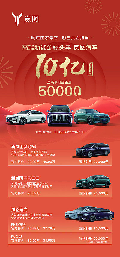 【嵐圖汽車(chē)推出10億置換補(bǔ)貼政策】