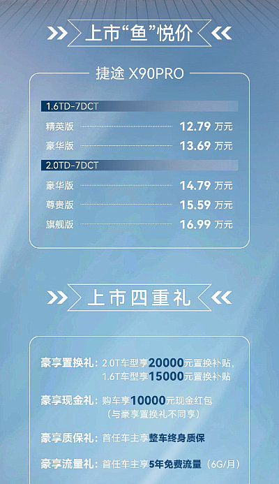 活動現(xiàn)場,捷途汽車推出旗下全新產(chǎn)品——捷途X90PRO,新車推出2。0TGDI-7DCT、1。6TGDI-7DCT兩種動力組合,共計5款車型,官方指導價12。79萬元-16。99萬元。作為大家庭大七座旗艦SUV,捷途X90PRO集強動力、大空間、高科技、高顏值于一身,專為追求實用與品味的大家庭用戶設計。為回饋用戶,捷途汽車此次推出包括最高20000元的置換補貼、萬元現(xiàn)金紅包禮、終身質(zhì)保以及5年免費6G/月流量包等多項上市權益,全方位提升用戶體驗。