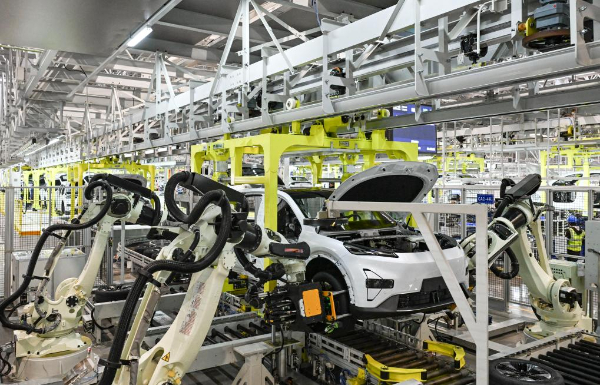 2025年1月9日在位于重慶市渝北區(qū)的長安汽車數(shù)智工廠總裝車間拍攝的自動化生產(chǎn)作業(yè)現(xiàn)場。新華社記者 王全超 攝