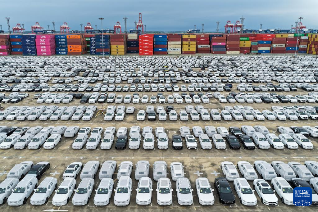 9月8日在江蘇省港口集團(tuán)南京港龍?zhí)陡蹍^(qū)拍攝的準(zhǔn)備裝船出口的汽車(無人機(jī)照片)。