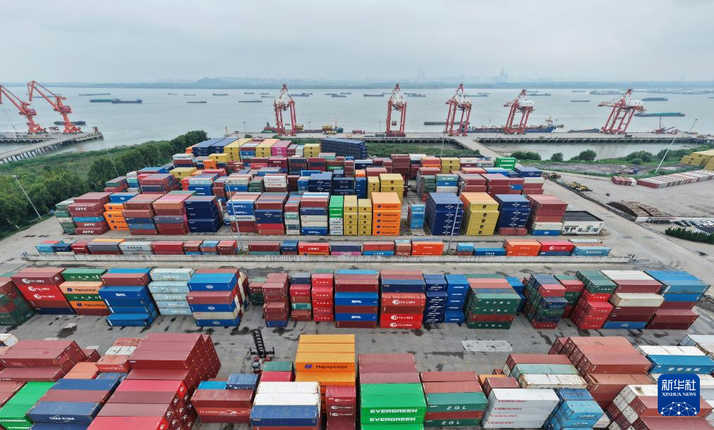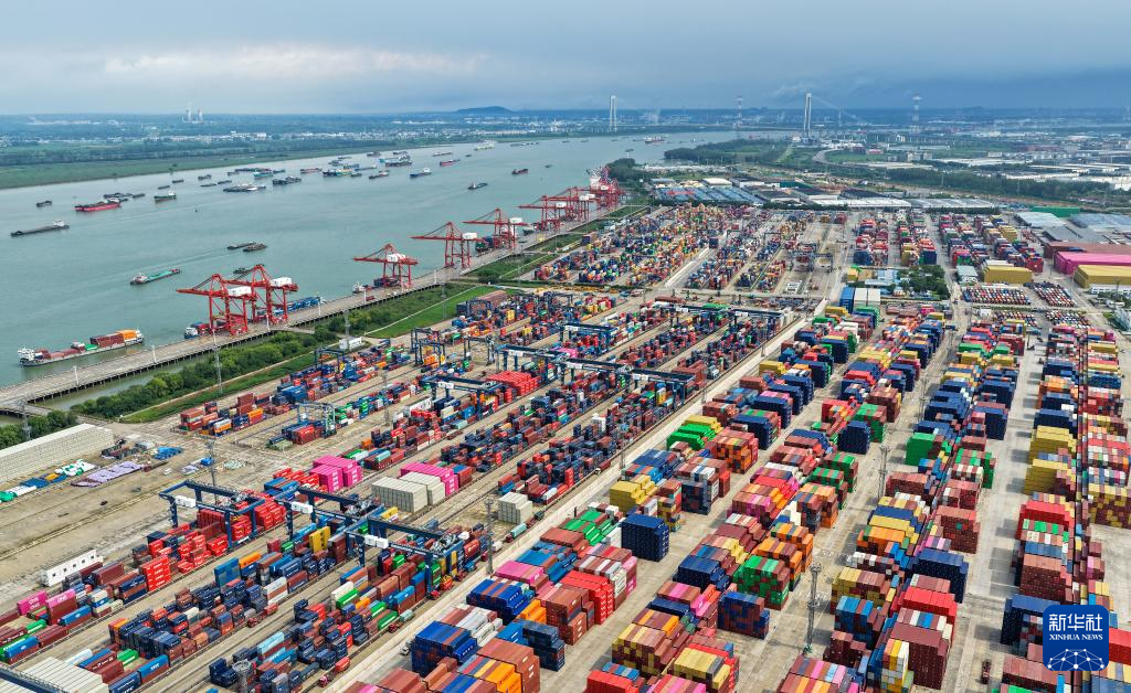 9月8日拍攝的江蘇省揚(yáng)州港集裝箱堆場(無人機(jī)照片)。