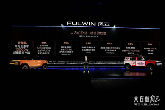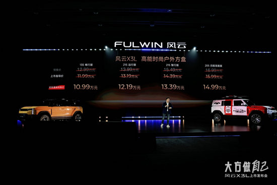 9月17日,風(fēng)云X3L于成都舉行上市發(fā)布會(huì),正式售價(jià)為10.99萬(wàn)元起,共推出四個(gè)版本車(chē)型,135暢行版售價(jià)10.99萬(wàn)元、215遠(yuǎn)行版售價(jià)12.19萬(wàn)元、215智行版售價(jià)13.39萬(wàn)元、205四驅(qū)高能版售價(jià)14.99萬(wàn)元。同時(shí),六大官改版型同步亮相。