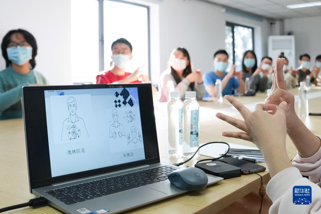 12月1日,在北京郵電大學(xué),志愿者在培訓(xùn)老師的講解下學(xué)習(xí)手語。