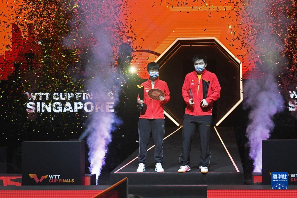 當(dāng)日,在新加坡舉行的WTT世界杯決賽男單和女單決賽中,中國選手樊振東、孫穎莎戰(zhàn)勝各自對手,獲得男單、女單冠軍。