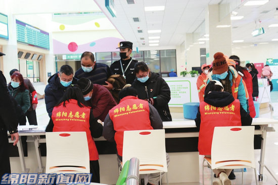 志愿者在綿陽(yáng)市兒童醫(yī)院新冠疫苗接種點(diǎn)服務(wù)