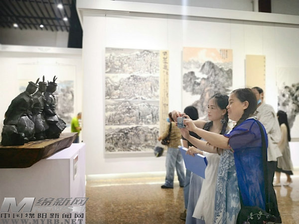 市民參觀綿陽市第二屆美術作品展(綿陽日報社融媒體記者張登軍攝)