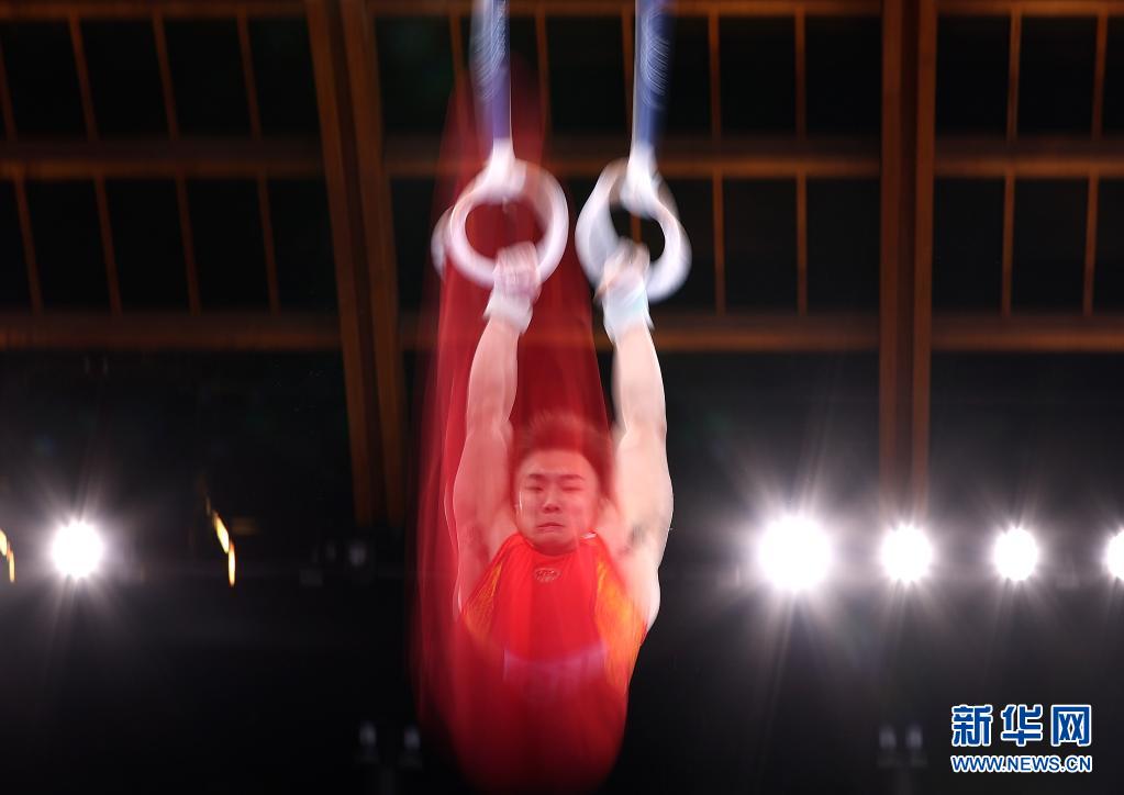 7月28日,孫煒在吊環(huán)項(xiàng)目比賽中。