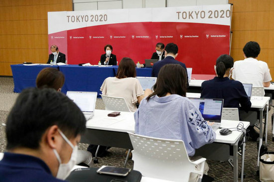 8月16日,東京奧組委主席橋本圣子(中)在新聞發(fā)布會(huì)上發(fā)言。