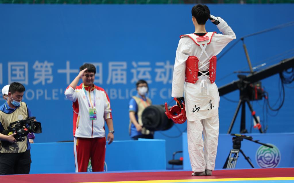 當(dāng)日,在陜西漢中舉行的第十四屆全運(yùn)會(huì)跆拳道項(xiàng)目男子58公斤級(jí)決賽中,山東隊(duì)選手梁育帥以總比分17比10戰(zhàn)勝江蘇隊(duì)選手王余龍,獲得金牌。