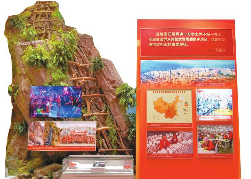 金秋北京,“奮進(jìn)新時(shí)代”主題成就展,展廳內(nèi)三張穿越時(shí)空的對(duì)比照吸引了人們的目光:第一張,垂直般攀附在懸崖上的藤梯令人心驚膽戰(zhàn);第二張,結(jié)實(shí)牢靠的鋼梯帶給攀緣者安全出行;第三張,易地扶貧搬遷群眾用上了祖祖輩輩想都想不到的樓梯。