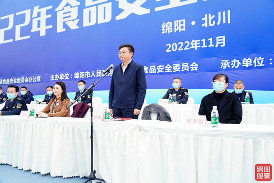 綿陽新聞網訊   為進一步健全食品安全突發(fā)事件應急處置運行機制,11月29日,綿陽市2022年食品安全突發(fā)事件(Ⅲ級)應急演練在北川羌族自治縣舉行。市委常委、副市長王曉松出席演練活動。