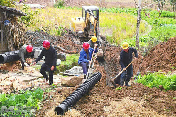 挖掘機在前面開溝,施工人員緊隨其后鋪管道……近段時間以來,在黃甸鎮(zhèn)金馬村,鹽亭生態(tài)環(huán)境局實施的“千村示范工程”農(nóng)村生活污水治理項目正加緊推進。
