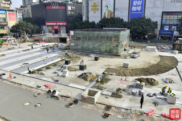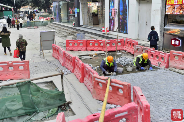 興力達(dá)廣場及其周邊街區(qū)道路是我市綿州記憶旅游基礎(chǔ)設(shè)施提質(zhì)升級(jí)建設(shè)項(xiàng)目的重要內(nèi)容。記者在現(xiàn)場看到,廣場上數(shù)十位工人正忙著運(yùn)料、鋪裝,中心地帶的路面鋪設(shè)正在火熱施工中,另一條改造后的新道路已經(jīng)接近完工。廣場一側(cè),一臺(tái)破碎機(jī)對(duì)老舊路面展開破碎作業(yè),幾天后,即可舊貌換新顏。在公園路上的施工點(diǎn),工人們分別拿著木錘或橡膠錘,對(duì)新鋪的撲克牌大小的防滑地磚敲敲打打,地磚之間留出的均勻縫隙能夠起到雨天滲水的作用。在施工點(diǎn)周圍,多家美食店都在正常營業(yè),一些服裝店正在忙著補(bǔ)貨。