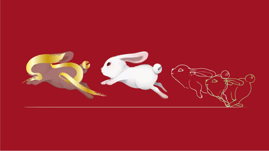 一片吉祥紅,瑞兔化草書。作為中國探月工程、中國行星探測工程的標(biāo)志設(shè)計(jì)者,2023春晚標(biāo)識(shí)的主設(shè)計(jì)師顧永江結(jié)合吉祥物“兔圓圓”的姿態(tài),定格奔躍向上的瞬間,從中國書法藝術(shù)的草書意象,幻化出一個(gè)全新“卯”字,于靜中生出動(dòng)姿——卯字如開門之形,兔形躍動(dòng)向上,卯兔躍開春門,新一年里踔厲奮發(fā)的新氣象躍然紙上。