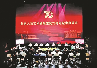 一夜之間,曹禺劇場的舞臺已經(jīng)從院慶紀(jì)念晚會轉(zhuǎn)換為院慶紀(jì)念座談會。6月12日上午,北京人藝建院70周年紀(jì)念座談會舉行,院長任鳴稱,北京人藝用70年300多部古今中外作品,傳遞出致敬經(jīng)典的態(tài)度和守正創(chuàng)新的追求。與會嘉賓圍坐舞臺,有恢宏的暢想,也有動人的追憶。