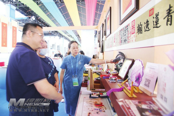 不止特色農(nóng)產(chǎn)品暢銷,精致獨(dú)特的文創(chuàng)產(chǎn)品也深受廈門消費(fèi)者喜愛。在李白詩意繡展位上,現(xiàn)場展示的畫屏、掛畫、背包、零錢袋、工藝品等產(chǎn)品種類繁多,既有巨幅條屏,也有袖珍小件,觀賞性與實(shí)用性兼?zhèn)涞木浪囆g(shù)品吸引不少人圍觀,買來收藏。工作人員介紹,“李白詩意繡繡院在江油市青蓮鎮(zhèn)粉竹樓,當(dāng)?shù)亓羰貗D女和殘疾人傳承蜀繡技藝,弘揚(yáng)李白文化。”