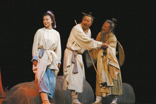 已經(jīng)演了30年依然魅力不減的《李白》無疑是一出充滿詩意的戲,這詩意并不因為李白是“詩仙”而自然產(chǎn)生,也沒有依靠傳統(tǒng)戲曲程式技巧而得到強化?!独畎住返脑娨獯嬖谟诠鶈⒑陮υ娙?ldquo;大喜大悲”的心靈解析之中,存在于蘇民“空靈、明朗”的導演構思之中,存在于濮存昕童心赤誠、恣意揮灑的傾情演繹之中,也存在于李白身后那輪大得出奇的朗朗明月之中?!独畎住烦浞终f明了一個容易被誤解的基本概念:戲劇演出中的“詩”,并不等同于文學意義上的“詩”。
