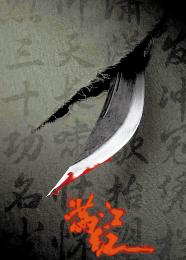 在影片概念海報(bào)上,寫(xiě)著《滿(mǎn)江紅·怒發(fā)沖冠》詞句的屏風(fēng)被一把鮮血淋漓的彎刀刺破,鮮紅的“滿(mǎn)江紅”三個(gè)大字力透紙背。整張海報(bào)色調(diào)陰暗,充滿(mǎn)懸念,透過(guò)刀縫窺見(jiàn)的屏風(fēng)之后,一片黑暗,讓人想要一探究竟。