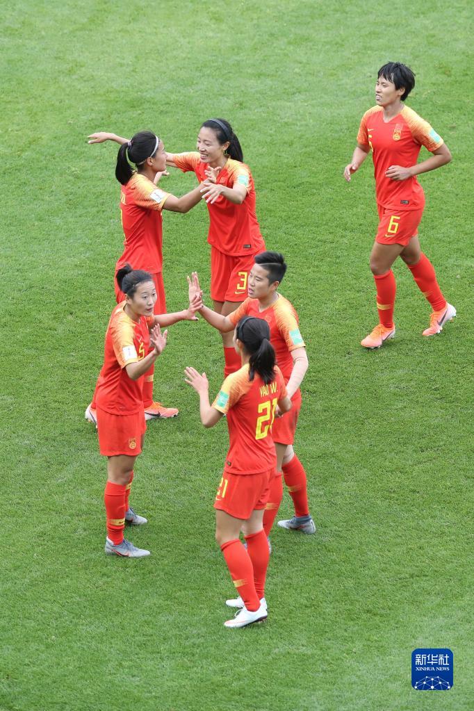 2019年6月17日,中國隊球員在晉級2019年國際足聯(lián)女足世界杯16強后慶祝。新華社記者徐子鑒攝