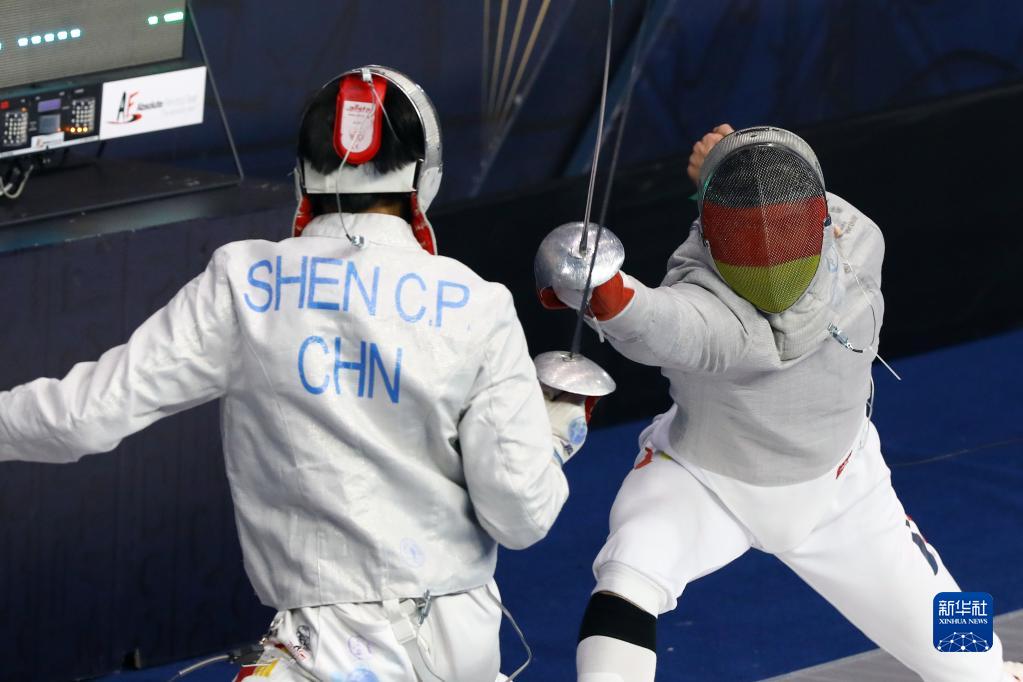 7月21日,中國隊(duì)選手沈晨鵬(左)與德國隊(duì)選手博納在比賽中。新華社發(fā)(艾哈邁德·戈馬攝)