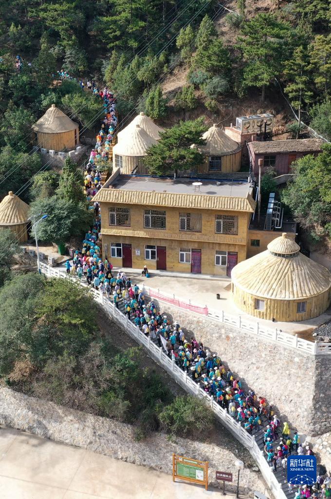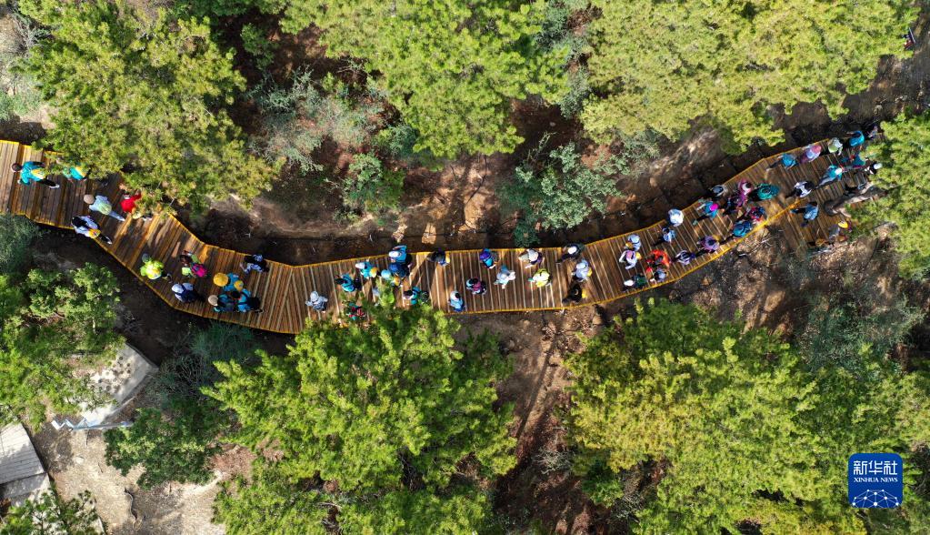 7月31日,徒步登山愛(ài)好者在比賽中(無(wú)人機(jī)照片)。