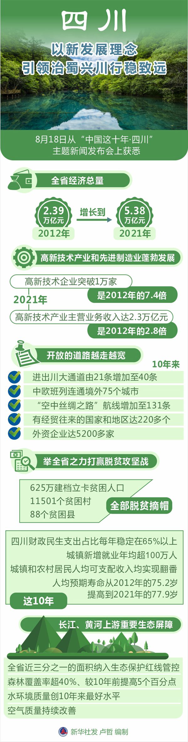 新華社成都8月18日電(記者胡旭)記者從18日舉行的“中國(guó)這十年·四川”主題新聞發(fā)布會(huì)上獲悉,黨的十八大以來(lái),四川深入學(xué)習(xí)貫徹習(xí)近平總書記重要指示精神,以新發(fā)展理念引領(lǐng)高質(zhì)量發(fā)展,砥礪前行、奮發(fā)進(jìn)取,治蜀興川各項(xiàng)事業(yè)取得新的重大成就。