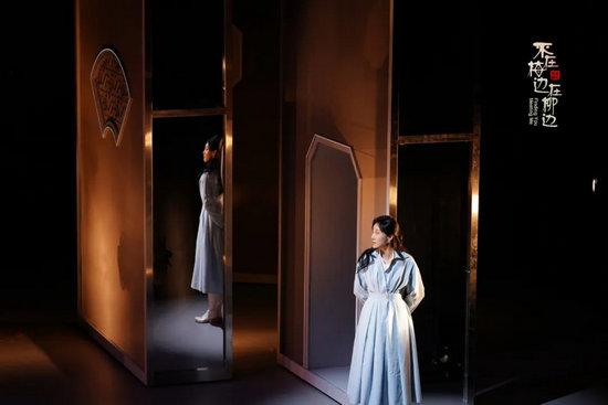“鏡子是自我內(nèi)觀的一個(gè)媒介”,查文淵利用《寫真》一折的隱喻,將杜麗娘與演員杜若進(jìn)行勾連——在《牡丹亭》中,杜麗娘被圍在閨房?jī)?nèi);在現(xiàn)代,演員杜若要按照父親規(guī)定的職業(yè)生涯走下去……她們都要找尋生活和自我的意義。查文淵談到:“湯顯祖《寫真》這一折是超越了時(shí)代的,女人大多作為男性描摹和凝視的對(duì)象,像《寫真》這一折在鏡中觀察自己,給自己畫像是沒有的。”