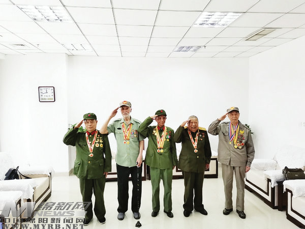 陳伷(左二)和綿陽(yáng)老兵合影