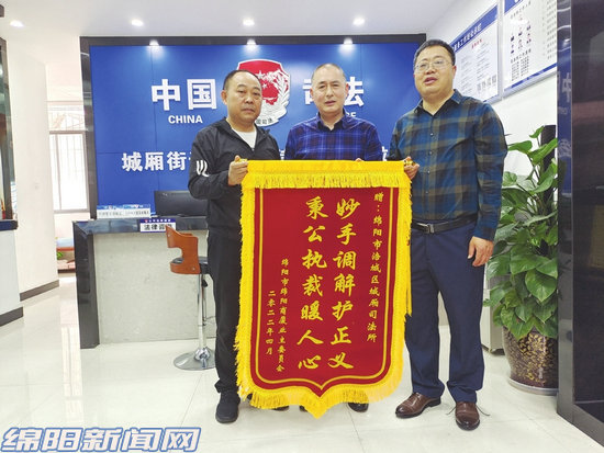 調(diào)解當(dāng)事人送錦旗致謝調(diào)解專家鄧啟貴