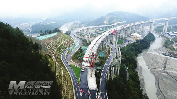 綿陽新聞網(wǎng)訊 9月26日,隨著最后一榀T梁精準(zhǔn)放置到位,歷時4年的九綿高速平武涪江特大橋主體工程建設(shè)全面完成,順利貫通(如圖),標(biāo)志著九綿高速公路全線的控制性工程取得階段性成功,為實現(xiàn)九綿高速全線貫通及廣平高速年底通車奠定了堅實基礎(chǔ)。