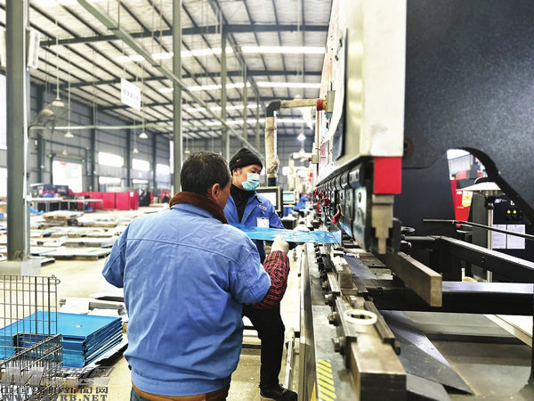 1月3日,在位于安州區(qū)的綿陽市攀豐智能制造有限公司生產(chǎn)車間里,機器轟鳴,一片忙碌景象。鈑金機、折邊機不斷將一塊塊鋼板制作成各種部件,工人們忙著組裝鐵皮柜、表面處理、裝填零件。