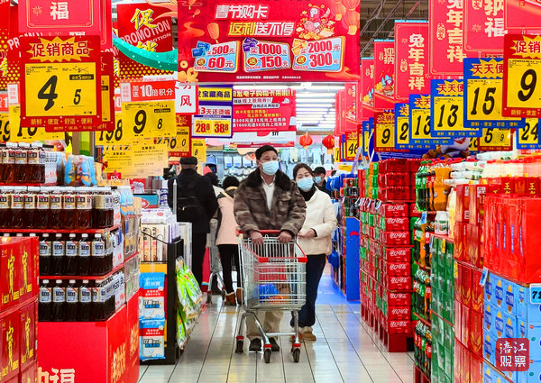 農(nóng)歷兔年春節(jié)將至,濃濃的年味撲面而來。1月6日,記者在綿陽城區(qū)各大超市看到,琳瑯滿目的年貨擺滿了貨架,前來選購年貨的人絡(luò)繹不絕,到處都是喜氣洋洋的景象。