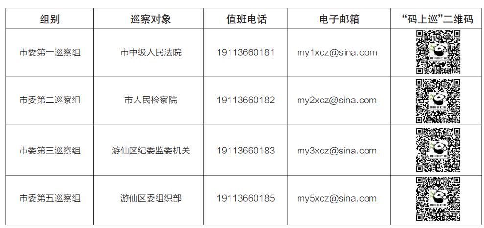 現(xiàn)將八屆市委第五輪巡察第二批次各巡察組分組名單、聯(lián)系方式及“碼上巡”二維碼公告如下,歡迎廣大干部群眾如實(shí)反映有關(guān)情況和問(wèn)題。