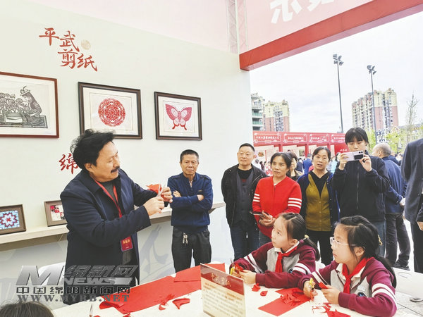 在非遺進(jìn)校園成果展現(xiàn)場,集中展示了近年來綿陽非遺進(jìn)校園取得的成果及活動(dòng)圖像,平武剪紙傳承人謝成飛向到場的市民開展剪紙培訓(xùn)教學(xué)。接下來幾天,鑫田糧藝、三臺(tái)剪紙、羌族草編、綿陽拼布等項(xiàng)目傳承人也將開展現(xiàn)場培訓(xùn)教學(xué)。