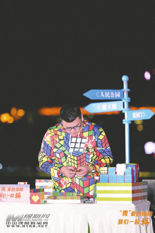 手起“方”落,用魔方“繪制”綿陽(yáng)。據(jù)了解,“‘青’愛的綿陽(yáng),我們一起拼”系列活動(dòng)已舉辦兩次。7月20日,9800個(gè)小魔方拼出580余年平武報(bào)恩寺。9月22日,4個(gè)小時(shí)、3500個(gè)魔方拼出綿陽(yáng)原創(chuàng)音樂(lè)劇《將進(jìn)酒》中李白的形象劇照。