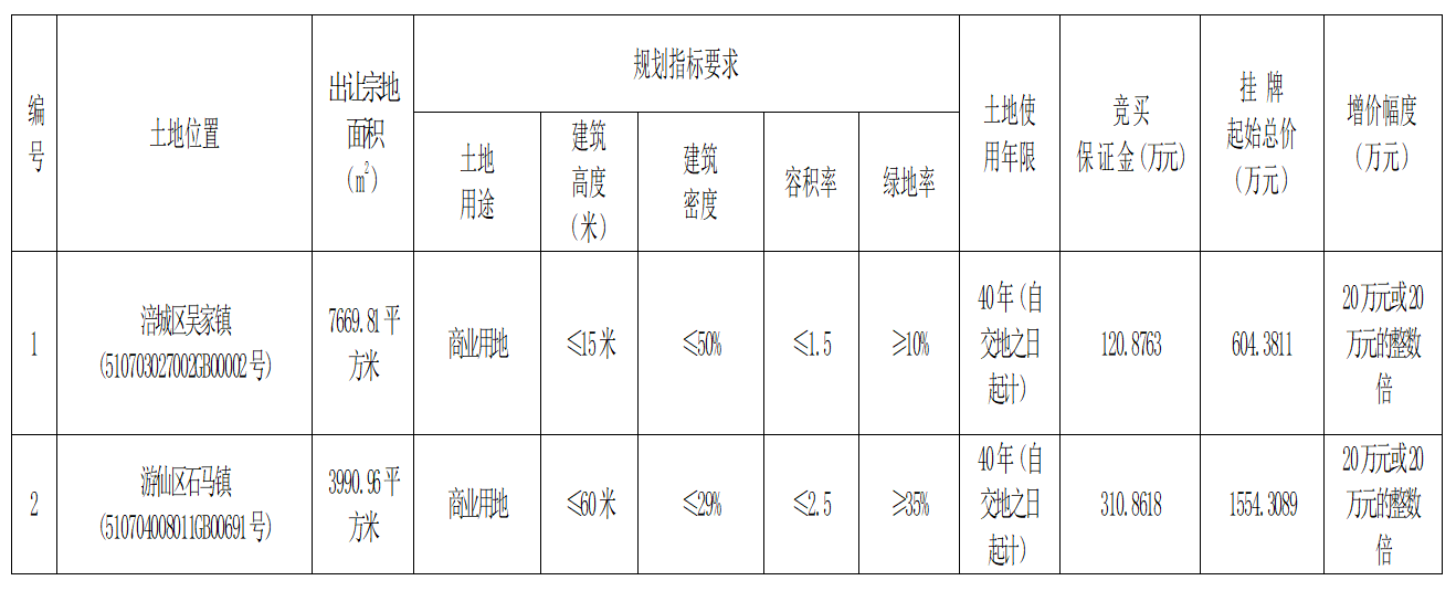 經(jīng)綿陽市人民政府批準,綿陽市自然資源和規(guī)劃局決定以掛牌方式出讓2宗國有建設(shè)用地使用權(quán),綿陽市公共資源交易服務中心具體組織實施本次掛牌出讓活動,現(xiàn)將有關(guān)事項公告如下: