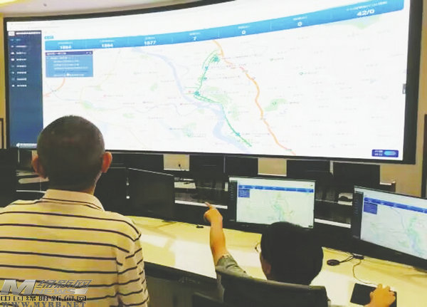 工作人員在大屏上查看城市智慧井蓋管理系統