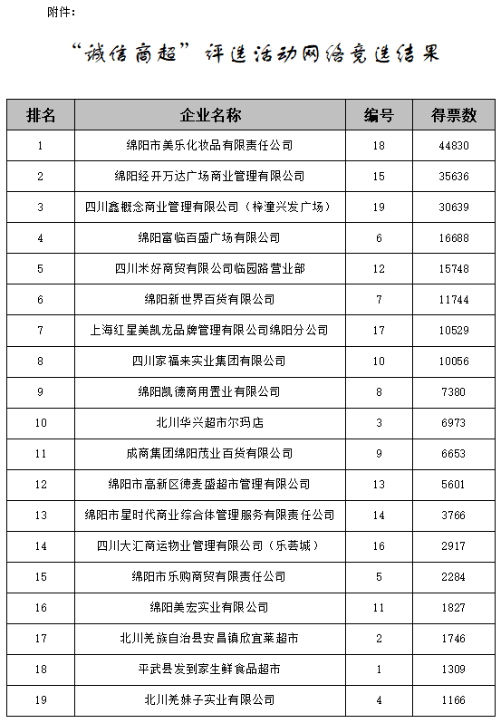 附件:“誠信商超(酒店、餐飲)”評選活動網絡競選結果