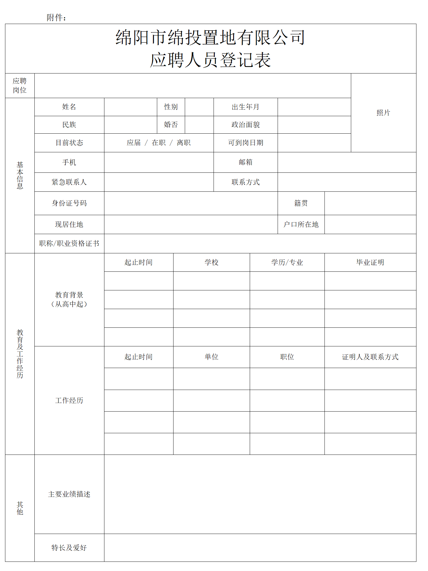 綿陽(yáng)市綿投置地有限公司應(yīng)聘人員登記表