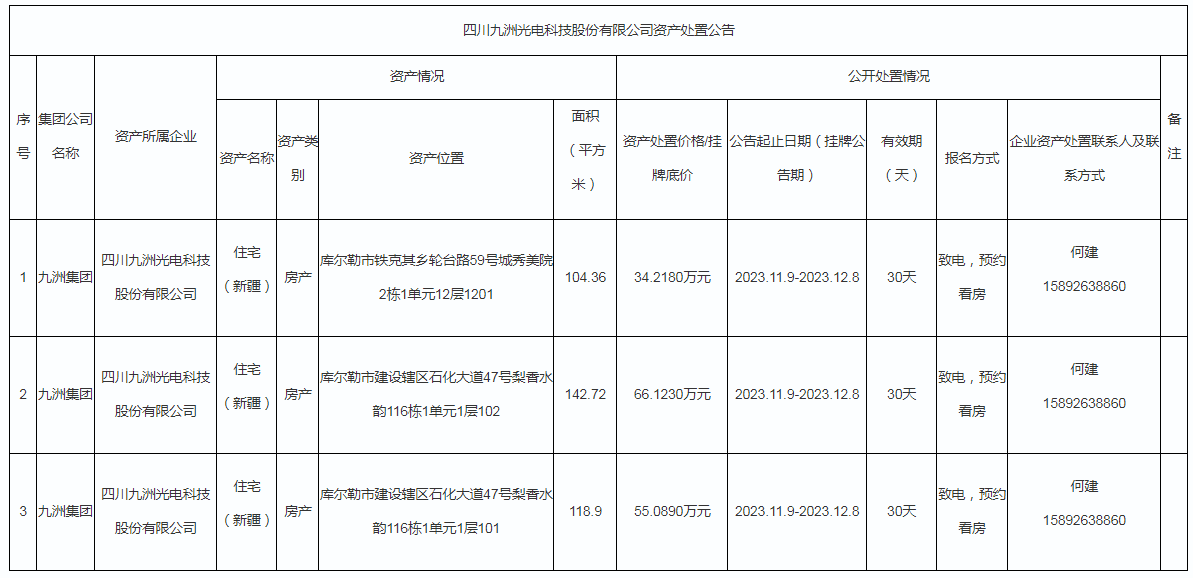 四川九洲光電科技股份有限公司資產處置公告