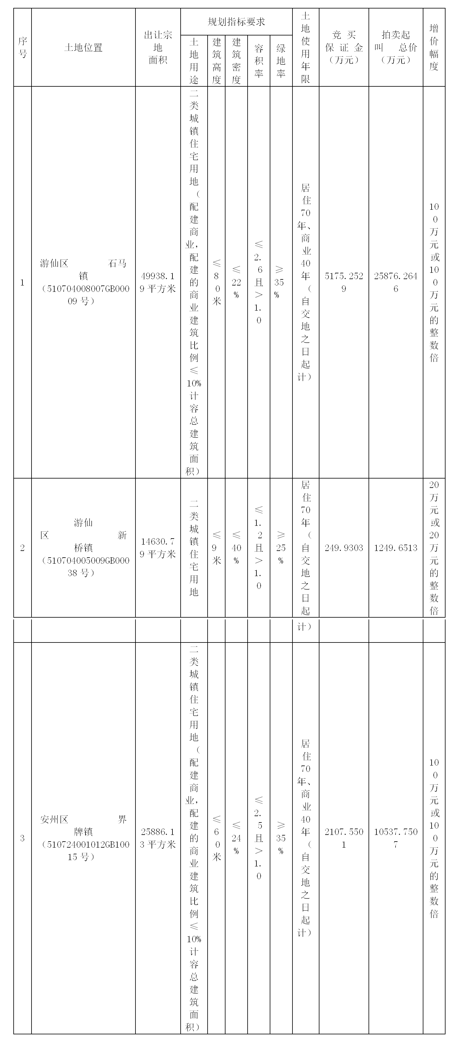 經(jīng)綿陽市人民政府批準(zhǔn),綿陽市自然資源和規(guī)劃局決定以拍賣方式出讓3宗國有建設(shè)用地使用權(quán),綿陽市公共資源交易服務(wù)中心具體組織實(shí)施本次拍賣出讓活動(dòng),現(xiàn)將有關(guān)事項(xiàng)公告如下: