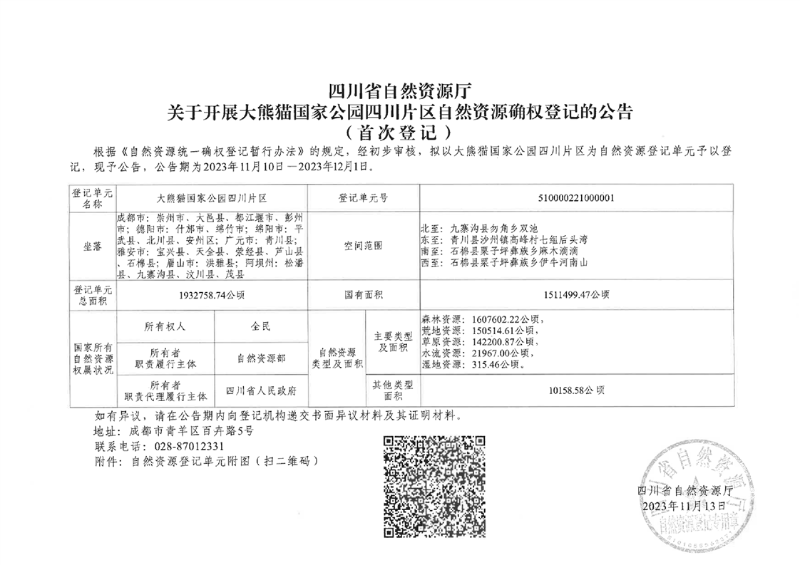 四川省自然資源廳 關(guān)于開展大熊貓國家公園四川片區(qū)自然資源確權(quán)登記的公告(首次登記)