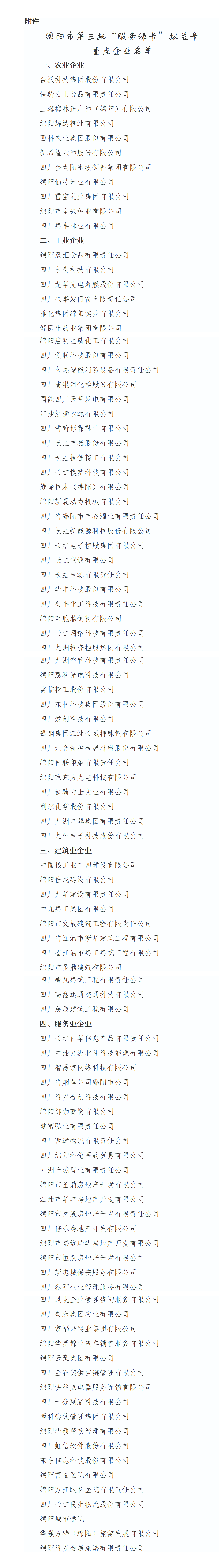 附件:綿陽市第三批“服務綠卡”擬發(fā)卡重點企業(yè)名單