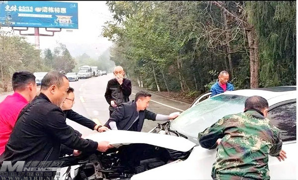 現(xiàn)場,黃義波指揮過往車輛避讓,金禾和趕到的路人對駕駛員以及乘客開展救援,他們先將司乘人員扶出車,同時將事故車輛推到安全地帶。為了防止車輛發(fā)生二次事故,黃義波還利用在部隊學(xué)到的知識及時將車輛電源斷開。